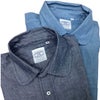 生地は、新色のネイビーシャンブレーと色鮮やかなブルーシャンブレー生地です。使い込むほどに味わい深く経年変化します。やさしい見た目の丸襟は、形に拘り自然に反り返るようにデザインしてあります。