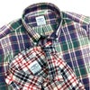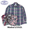 バギーのマドラスチェックシャツです。使用したマドラス生地は、弊社が、直接、南インド・マドラス地方に出向き、多数あるマドラス生地の柄の中から時間を掛けて厳選し、アメリカンブランドを多数手掛けた縫製工場で丁寧に生産しました。生地は、全て古い織り機により作られ、手織りのようなネップ(繊維の織りムラ・繊維のかたまり)も再現しました。着込むほどに「泣き」と呼ばれる色抜けも魅力的です。サラッと軽い肌触りで、通気性も良く、春夏は一枚で、秋冬はセーターなどのインナーとしても使えます。一年を通して手放せないアイテムです。※D-116(WHT×NVY×RED)は、在庫により、台エリに「India Madras」ラベルが付くものがありますが、お選び頂けません。ご了承ください。