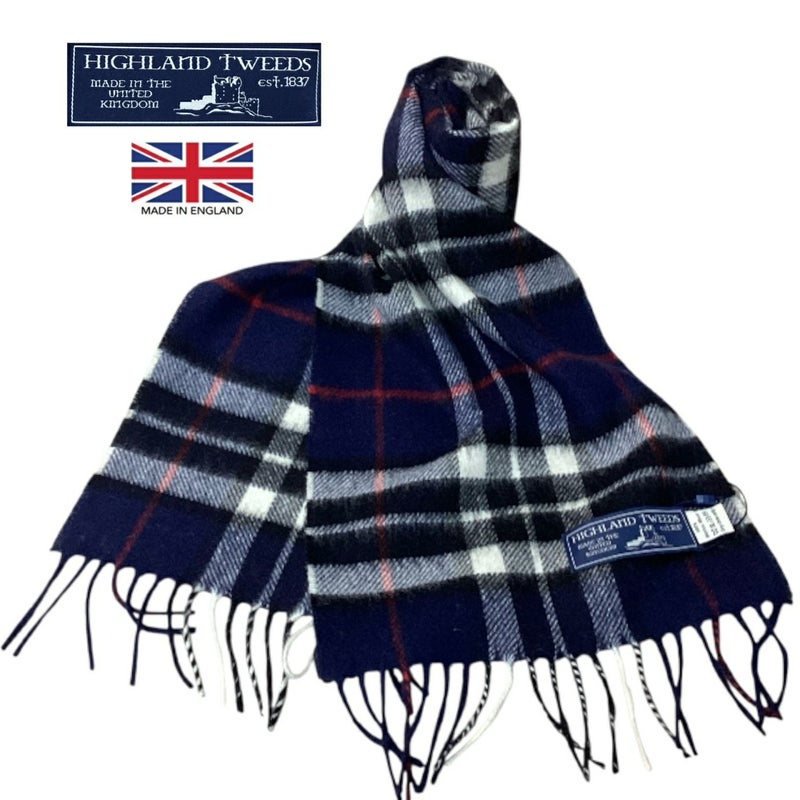 2025年 秋冬新作 やさしい肌ざわりで人気 イギリス製 上質ウールマフラー HIGHLAND TWEEDS ハイランド ツイード tartan lambs wool muffler イギリス製 送料無料 HIGHLAND TWEEDS【ハイランドツイード】BRONTE【ブロンテ】NVY TOMPSON マフラー スカーフ メンズ レディース (男女兼用)【smtb-m】