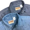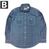生地の織りむらも再現。ステッチワークにもこだわったり、洗いこむほどに雰囲気の良いあたりや色落ちをします。両胸にポケットが付き、白色の4つ穴プラスチックボタンを装備。シャンブレーは、タテ糸に色糸を、ヨコ糸には白糸(またはタテ糸とは異なる色糸)を使用した平織り生地の一種です。その歴史は古く、フランス北部の「カンブレー」という町がその発祥地とされています。実際、この生地の名前はそのまま、この町の名前に由来しています。カンブレーでは、主に聖職者の衣服などに使用されていましたが、20世紀初頭にアメリカのミリタリー・ワークウェアとして採用されたことがきっかけとなり、世界中に広まりました。